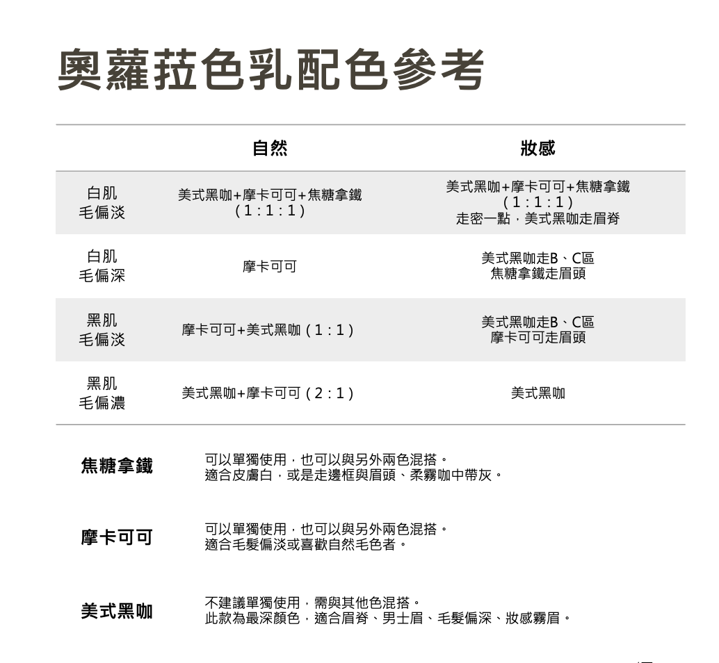 妝感:美式黑咖走B、C,摩卡可可走眉頭